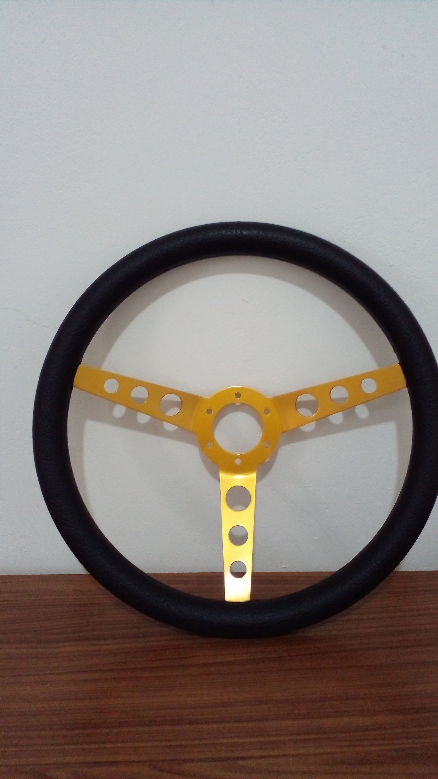 Volante esportivo universal Dourado sem cubo, ideal para personalizar seu carro com estilo e conforto. Acabamento resistente e diferenciado.